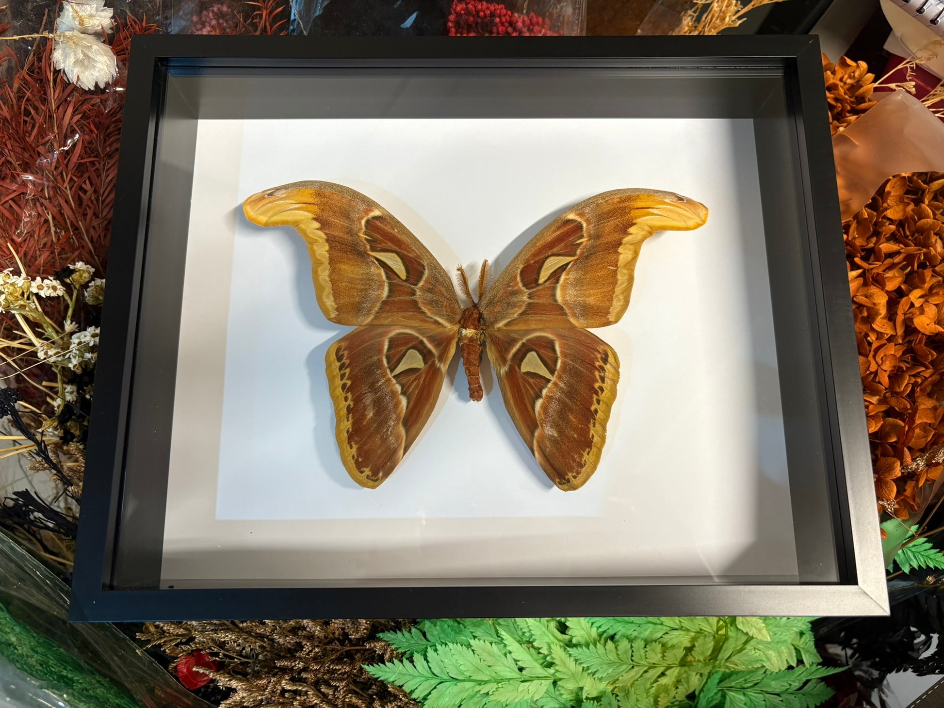 The Atlas Moth, one of the largest and most majestic moths in the world, is beautifully showcased in this 10x8 frame. The male Atlas Moth is known for its striking patterns and remarkable wingspan, with soft golden hues and intricate markings that create a mesmerizing display. Native to Southeast Asia, this moth’s delicate yet imposing presence is a true testament to nature’s grandeur. The 10x8 frame offers ample space to fully appreciate the moth’s size and the fine details of its wings, making it a breathtaking centerpiece for any collection.