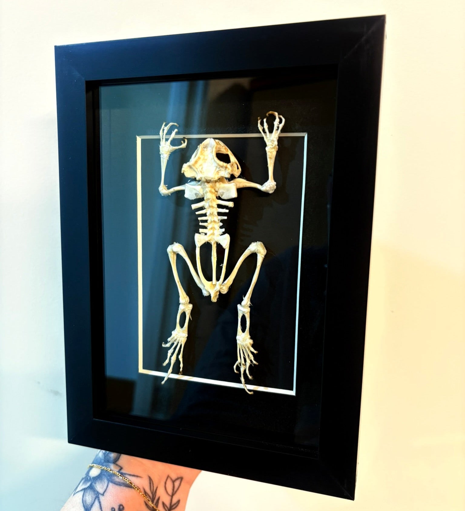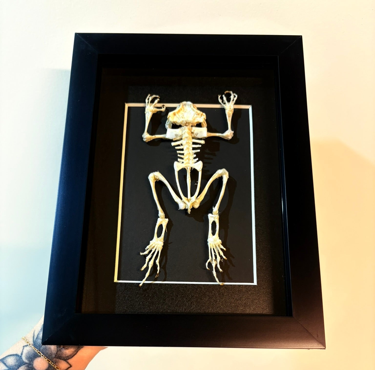 The Duttaphrynus melanostictus, or Asian black-spined toad, is presented in a 5x7 inch frame that highlights its distinctive skeletal structure. This specimen is ideal for biological research and educational exhibitions.