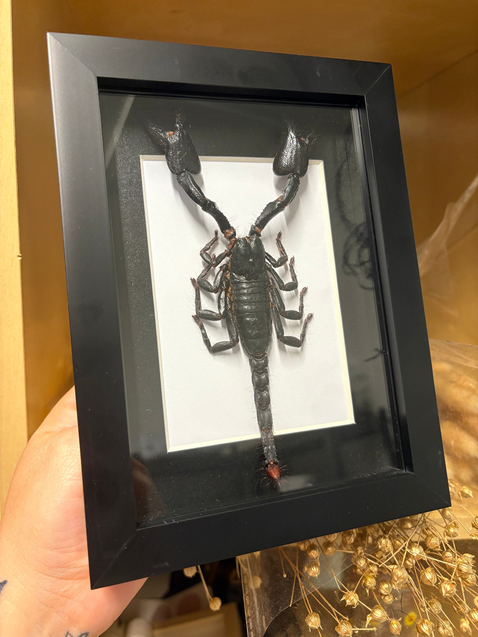 Join us for an hour hands-on experience where you'll learn to pin and display two preserved scorpion specimens. The scorpions that you will be pinning are two sizes of South East Asian Forest Scorpion. This workshop is perfect for anyone wanting to learn how to arrange nature's beauty into a stunning display for your home or as a thoughtful gift!